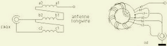 Goed bruikbaar is de autotransformator van de antenne in de plaats van de impedantietransformator in de eerste figuur b. De kant van de magmetische balun die normaal aan de afscherming is verbonden komt nu aan de tegencapaciteit of "aarde".