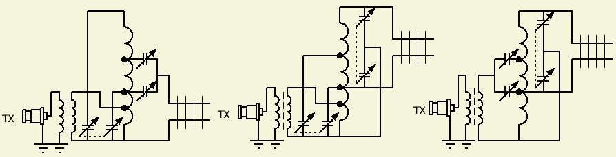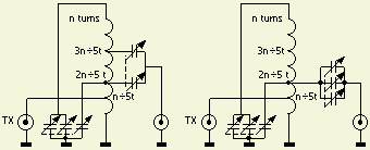 In ontwerpen van anderen ziet u hetzelfde systeem met één spoel maar de aftakkingen zijn anders. Helaas verklaren de auteurs niet hoe en waarom de desbetreffende taps gekozen werden. Als het rendement buiten beschouwing gelaten wordt, dan kan inderdaad met andere aftakkingen op de spoel eveneens een SWR = 1 gehaald worden.