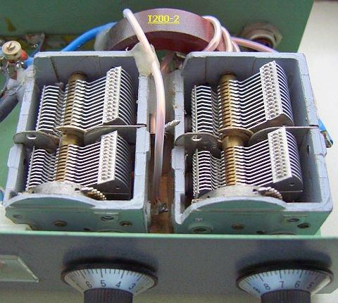 Tweevoudige variabele condensatoren van 2 × 470 pF uit oude ontvangers zijn zeer geschikt en kunnen in dit ontwerp 400 W of iets meer aan bij veel antennesystemen. De vrije ruimte tussen een vaste en draaibare plaat zal ongeveer 0.6 – 1 mm zijn. Met de condensator bijna uitgedraaid wordt de 40 m band bestreken en daarom is een zo klein mogelijke nul capaciteit belangrijk. Is die te groot dan lukt het afstemmen op 40 m net wel of net niet. Het 20 m bereik wordt grotendeels bepaald door de variabele capaciteit tussen de tweede en derde aftakking van de spoel.
