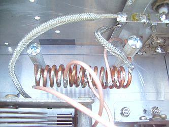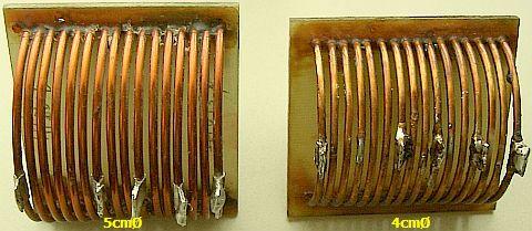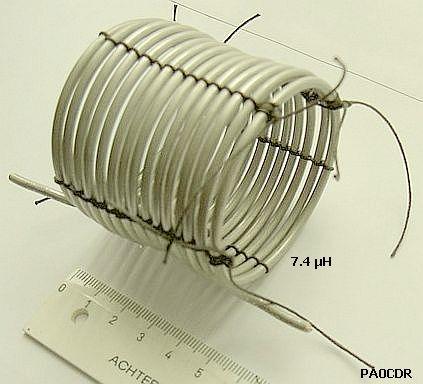 Hij maakte de luchtspoel van 6mm² installatiedraad omdat geëmailleerd koperdraad van grotere diameter lastig te krijgen was in zijn omgeving. Het voordeel van het aardingsdraad is dat het stug is, goed in vorm blijft en daardoor geschikt is voor luchtspoelen.