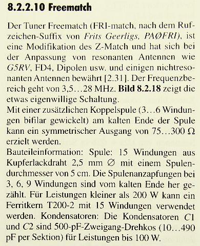 (Freematch line matching unit gepubliceerd in RSGB's RadCom 1989 july en Rothammel's Antennenbuch)
