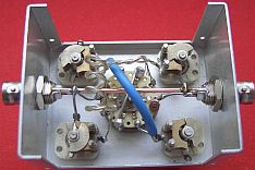 Voor 70 cm diende een 7 cm dikke (blauwe) draad van als "stripline". Verrassend genoeg was met deze 70 cm tuner ook de 2 m band "plat" te krijgen.