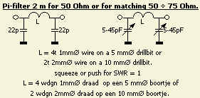 ATU 2m (PI FILTER) OF AANPASSING VOOR 50 Ω » 75 Ω