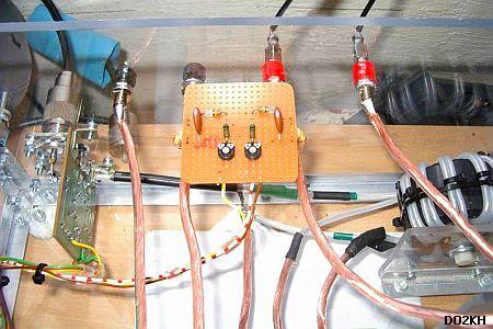 To remove any electrical charges that sometimes occur on the antenna and cause noise problems, 3 × 330 k resistors were added in series. That number was due to the expected high voltage with his too short antenna for the 160 m band.
