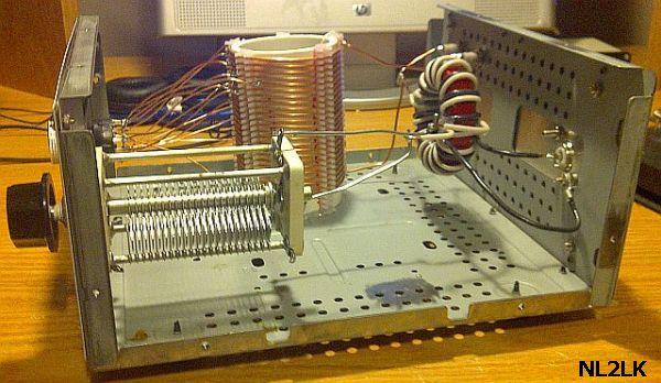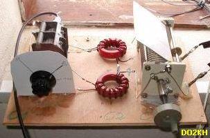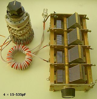 Wie o. g. reicht ein einfacher Doppeldrehko mit 2 × 500 pF. Für 160 m sollten dem Drehko min. 100-330 pF paralell hinzugeschaltet werden. Ein Aufbau mit zwei T200 Kerne («fig) ist auch nicht erforderlich, ich konnte keinen Unterschied messen bei der Variante mit einem Kern, wiederum ein Bauteil weniger.