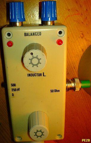 Kees, PAØLL who is famous for his LL-tuners, sent me photographs of his "LL S-Match". There was much demand for a small portable antenna system including a small ATU. For this reason his intention was to build and sell a handy ATU inclusive the antenna in a carry box. The final product is built with components, which are made especially for the tuner. C = 11 - 470 pF (knob with 1 :_6 reduction), L = 34 µH. The ferrite toroid for the balun was specially made by Amidon for this ATU. I expect that all his handcrafts made ATU's ends as "collector items"!