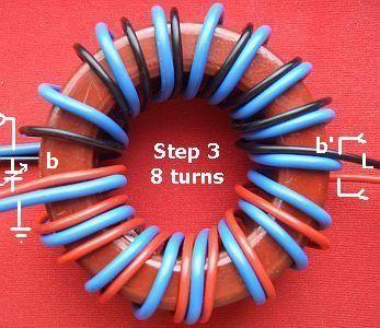 The windings should provide high-voltage insulation by using Teflon covered wire. Another option would be to use RG58 coax cable with the outer isolation and screen stripped off. Do not twist the wires of the primary windings with the wires of the secondary windings. In the picture (see fig») the light blue with the blue wires.
