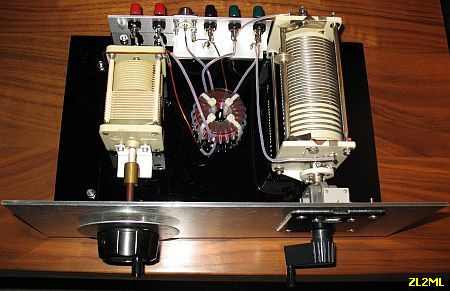The use of a roller inductor enables tuning only by turning knobs. Some hams don’t like roller coils, not realising that a switched inductance with many taps has a lot more self-capacitance and self-inductance. Most of the time you can’t achieve a proper adjustment because the needed point is somewhere in between the taps. Still, I provide in this present application a switched inductance of 25 µH, which will be adequate for most of the antenna systems. An extra variable capacitor of 470 pF from a vintage AM receiver can be added in series with the input to help reducing the VSWR.