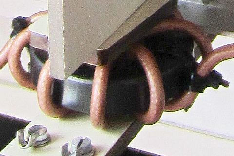 De rolspoel lijkt te groot maar is wel op zijn plaats omdat met een te korte antenne er veel vermogen in de tuner achterblijft. Zelfs met 400 W kan zo'n spoel heet worden en de windingen werken dan zelfkoelend. Verder zijn de elektrische verliezen van deze rolspoelen met platte windingen erg klein.