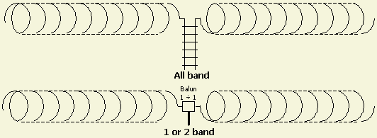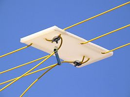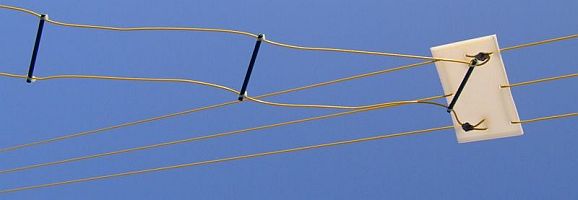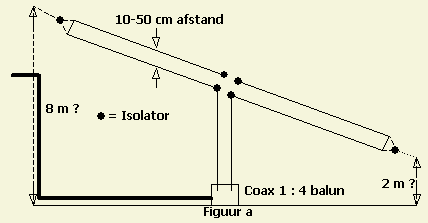 De voordelen van dit symmetrische systeem zijn: - Eenvoudig zelf te maken. - Goedkoop. - Geschikt voor alle banden. - Minimale verliezen. - Veroorzaakt minder storing op radio en TV. - Is zelf minder gevoelig voor storingen uit de omgeving. - Minimale windbelasting. - Niet zo opvallend in een woonwijk. |