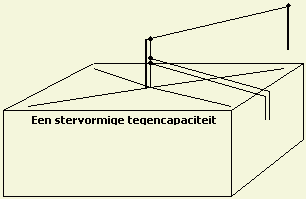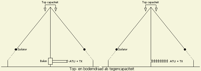 Een («fig) verticale antenne(staaf) of buis kan elektrisch verlengd worden door het aanbrengen van een topcapaciteit. Een gedeelte van de tuidraden is koperdraad dat aan de top bevestigd wordt. Ook hier geldt hoe meer metaal buiten hoe beter. De stroom aan de top is niet meer nul en daardoor wordt de antenne effectiever. Als tegencapaciteit werken twee even lange en zo mogelijk symmetrisch geplaatste draden op of in de grond. De antenne wordt gevoed met ATU, coaxkabel en 1 ÷ 4 balun van goede kwaliteit. Voeden met openlijn is ook mogelijk en zelfs nog beter!