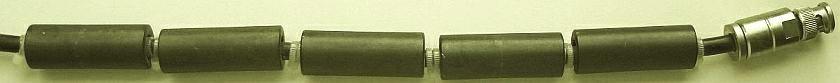 Hoewel mijn 5 banden vertical op een mast (fig») in het voedingspunt al een ferriet mantelsmoorspoel heeft, gebruik ik het getoonde model op een PVC pijp zelfs binnenshuis (direct na de doorvoer) als extra maatregel tegen storing. Een aantal geschikte ringkernen op elkaar met de kabel een paar keer er doorheen gevoerd werkt ook goed. Test wel of de kern niet warm wordt met maximaal zendvermogen.