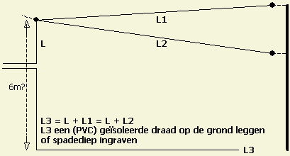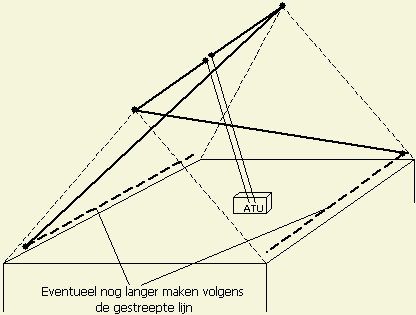 Zorg ervoor dat de einden wel een beetje uit de buurt van mens en dier blijven in verband met de aldaar optredende hoge HF spanning. Met het oog op ongewenste neveneffecten bij voorkeur ook wegblijven van dakgoten en andere metalen objecten.