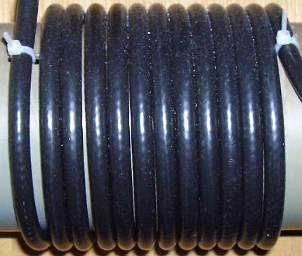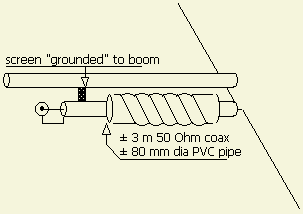 Zelf geef ik in plaats van een constructie met ringkernen de voorkeur aan PVC buis met een diameter van 7 - 12 cm gewikkeld met coaxkabel. Neem ten minste 3 m kabel voor 10 t/m 20 m en 6 m coaxkabel voor 10 t/m 80 . Bij gebrek aan iets anders heb ik in het buitenland meermaals een lege plastic bronwaterfles als spoelvorm toegepast. De kabel is goed te fixeren met kabelbinders of door alle windingen aan elkaar te plakken met seconden lijm of zuurvrije siliconenkit.