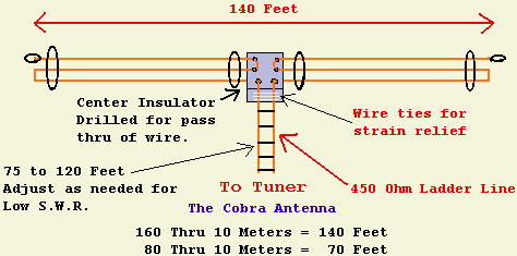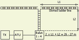 Een gunstige impedantie voor een balun of antennetuner bereikt men als het systeem een fysieke lengte heeft van 26.5 - 27.5 m in het gebied van 10 t/m 80 m. Voor uitbreiding naar 160 m moet dat 53 - 55 m worden. Omdat de verkortingsfactor van de te gebruiken lijn niet bij iedereen hetzelfde zal zijn, kunt u eventueel met de totale lengte te experimenteren. Overigens zal de antenne met een langere of kortere voedingslijn niet beter of slechter werken, vooropgesteld dat uw tuner het systeem aan kan. Voor een goed rendement zou een dipool op 80 m niet kleiner moeten zijn dan 2 × 13.5 m.