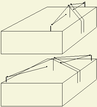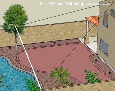 Is de hoek tussen de beide benen van een dipool (fig») kleiner dan 90°, dan werkt de antenne minder effectief als dipool. Vooral op de lagere frequenties lijkt het meer op een verbrede "open lijn" met slechte of minimale straling. Het gaat beter als men er een Delta loop of raamantenne van maakt door de uiteinden aan elkaar te knopen. Aan een vriend heb ik geadviseerd om dat te doen en zijn signaal werd op