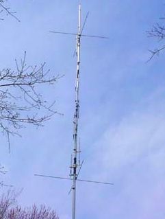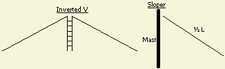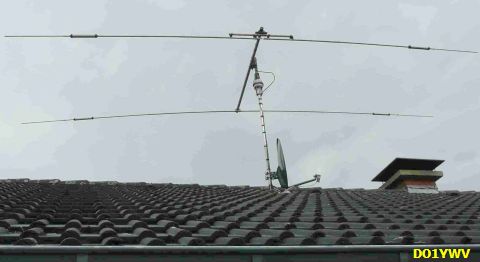Geruime tijd heb ik goede resultaten bereikt met een 3 banden Fritzel dipool als inverted V tegen het dak van de zolder. Nadeel is meer storing door consumenten elektronica. |