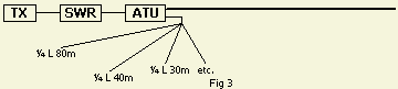 Een goede remedie voor HF ontkoppeling of "aarde", is het aanbrengen van ¼ λ draad per band (fig») aan de apparatuur of ATU. De geïsoleerde draad naar buiten voeren of anders op de vloer in de shack uitleggen.