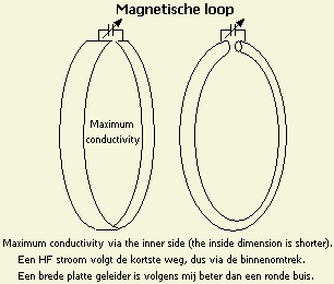 In de natuur wordt de weg van de minste weerstand of energie gevolgd. Bij een magnetische loopantenne zal een HF stroom de kortste weg kiezen en zich grotendeels via de binnenomtrek van de straler verplaatsen. Daarom ben ik van mening dat een brede platte strook als geleider (fig») beter is dan een ronde buis.