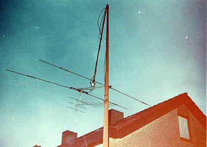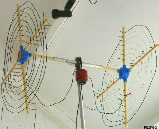PE1NBD maakte ook zelf de linkse («fig) constructie als statief voor een 11-element
