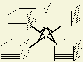 Als de eigenaar geen toestemming verleent voor het maken van bevestigingen of ophangpunten, kunt u kruisvormige constructies maken van metaal of geïmpregneerd tuinhout. Toen ik nog op de bovenste verdieping van een flat woonde, waren dergelijke kant en klare dingen niet te koop en moest dat zelf (zie onderstaande tekening) gemaakt worden. Zo'n statief kan tegen omvallen verzwaard worden met bij voorbeeld goedkope (sloop) grindtegels.