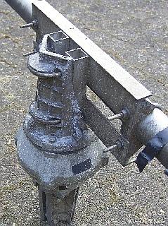 Een stevige vrijstaande mast kan toch door windstoten knikken of afbreken. Bij een gelijkmatige sterke wind is er over het algemeen niets aan de hand. Omstreeks 1982 keek ik midden in de nacht tijdens een storm uit het dakraam en zag mijn 2elements Yagi met home made 2 m antenne niet meer tegen de grauwe lucht. Het waarom ziet u op de foto. Een stalen verlengbuis met een wanddikte van