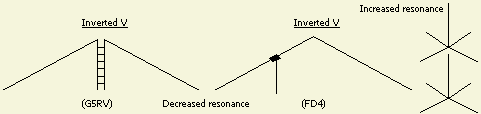 De antenne (bij voorbeeld G5RV, ZS6BKW, FD4 etc.) is niet meer hetzelfde, het heeft een lagere resonantie dan het origineel. Er is grote kans dat de SWR op een aantal banden anders is. Dat geldt ook voor een andere lengte of eigenschap (impedantie) van de voedingslijn.