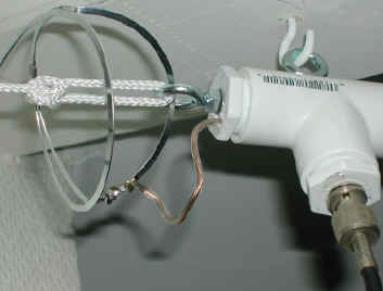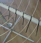 De draad van de antenne door de lintlijn rijgen om de "linear loading" stub op te hangen, zodat geen kabelbinders nodig zijn.