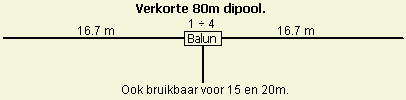 Een 2 × 20 m dipool voor de 80 m band blijkt nog behoorlijk effectief te zijn als het 67% ingekort wordt en een lengte heeft van 2 × 13.40 m!