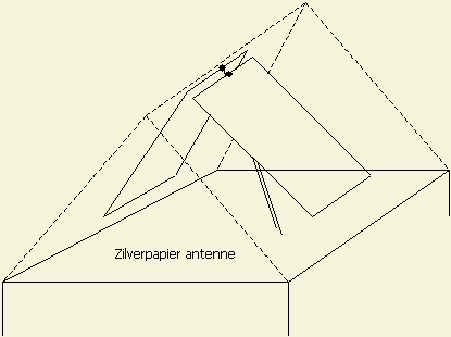 Wat het ook goed doet bij een droog en niet geleidend dakbeschot zijn banen zilverpapier (fig») als antenne. Omdat het brede stroken zijn, kan de lengte van de antenne veel korter zijn dan dat volgens de gebruikelijke formules zou worden. Bovendien wordt het systeem behoorlijk breedbandig. Om brede banen samen te stellen, werden stroken huishoud aluminium folie overlappend met punaises of stroken aluminium profiel tegen het dak bevestigd. Voor één band gevoed met coaxkabel kan men lengte en breedte van de stroken experimenteel (met een dipper) op maat maken. Het formaat van de stroken is niet kritisch als afstemming plaats vindt met open lijn en symmetrische tuner.