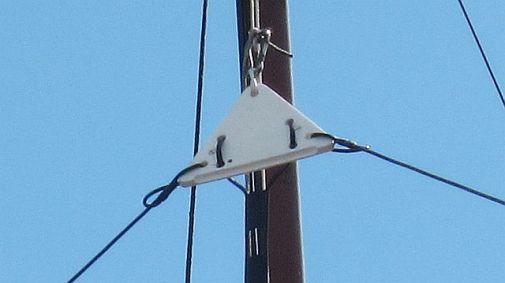 Wireman verkoopt steunen (fig») om open lijnen van de antennemast vrij te houden. De afbeeldingen brachten PAØEA op het idee zelf zoiets te maken. De constructie volgens de tekst en foto's zal wel duidelijk zijn.