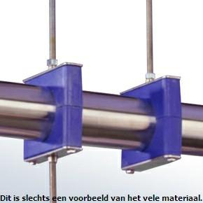 Verder maakt hij veel gebruik van Hydraulica leidingklemmen als isolator van antennes. Ze zijn gemakkelijk, goedkoop en een van de merken is (fig») Stauff http://www.stauff.com/. De klemmen zijn er in ontzettend veel maten. Zij worden geleverd door de groothandel in hydraulica materiaal. Hij koopt het spul bij PEHAVO in Oss. Er zijn ongeveer 15 maten in voorraad zoals 30, 42, 48.3 en 50 mm. Het kost niet veel inclusief alle standaard bouten en plaatjes met schroefdraad. Een stukje Alu plaat met een uitlaatklem wordt een prachtige antenne isolator met mastklem. Hij maakt veel gebruik van het aangeboden materiaal. GB Towers gebruikt ze ook als isolator voor zijn antennes. Tot zover zijn bevindingen.