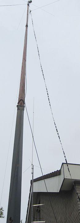Deze antennes werden als inverted V aan een 12 m hoge metalen mast bevestigd. |
