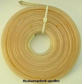Met een open dipool en symmetrische antennetuner is een 250 Ω impedantie van de voedingslijn geen probleem. De verliezen zullen wat groter zijn dan dat van een eigen gemaakte kippenladder maar het voordeel van een flexibele minder opvallende voedingslijn is ook niet weg te cijferen. De huidige prijs per meter is € 2,65. Inclusief verzendkosten voor bezorging in Nederland betaalt men ongeveer € 55 voor 15 m.