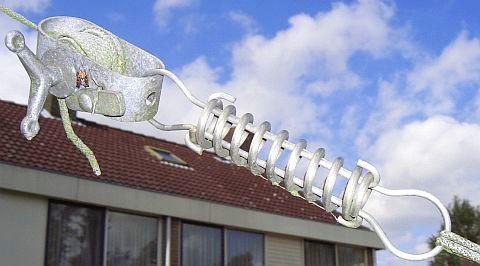 Voor het opspannen van antenne of tuidraden gebruik ik RVS trekveren die bedrijven voor agrarische producten aanbieden en bestemd zijn voor schrikdraad installaties of weide afrasteringen. Iets dergelijks wordt ook bij de jachtbouw gebruikt meldt men mij.
