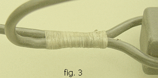 (1) Maak een lus van binddraad (fig1) met beide uiteinden naar links. Windt één einde stevig om de antennedraad en steek dat dan door de lus.