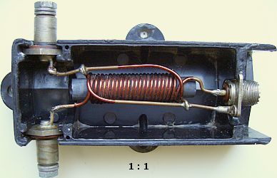 Hiernaast ziet u een paar snel in elkaar gezette modellen om te testen of merkloze ringkernen afkomstig van vlooienmarkten geschikt waren voor HF ATU's. Door de mechanische opbouw van componenten in symmetrische antennetuners zal altijd enige onbalans ontstaan en ook deze scheidingstrafo kàn dat veroorzaken. Door het verwisselen van de ingangsdraden is de onbalans van het hele systeem eventueel te compenseren of te herstellen. Een voordeel van deze ingang is een galvanische scheiding tussen transceiver en antennetuner. Er kan zonder probleem een draadantenne of een symmetrisch antennesysteem aangepast wordt.