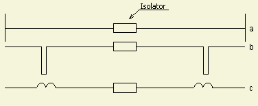 In figuur C brengt men in het midden van beide helften of iets uit het midden een spoel aan om de antenne weer in resonantie te brengen. Als deze spoel een voldoende hoge zelfinductie heeft, dan is dat een isolator voor een hogere frequentie (het gedeelte tussen de spoelen). Zo verkrijgt men een antenne die op twee banden in resonantie is.