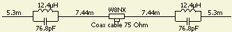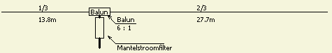 Er wordt bij deze antennes aangenomen dat de impedantie van het voedingspunt precies 50 Ohm is, maar dat is zelden zo. De coaxkabel wordt dus niet afgesloten met de karakteristieke impedantie en gaat als impedantie transformator werken. Aan de zenderzijde kan zo een ongunstige waarde ontstaan. Daarom wordt er vaak een bepaalde lengte voor de voedingslijn aanbevolen om de impedantie op een aanvaardbare waarde te brengen. Hier gebruik ik altijd een lengte van 27.2 m/50 Ohm coaxkabel met een verkortingsfactor van 0.66 (RG213 en RG58).