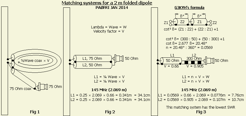 The system is based on a complex formula L = [arctan(sqrt (B/(B ^ 2 + B +1)))]/(2.pi), B = Z1/Z2, that can be found on the Internet together with the associated graphics. For the DIY builder the graph below is clearly enough to get started. The adjustment is quite wide-band and in principle coaxial length of one-twelfth wavelength should be sufficient, but according to the formula the matching is optimum if the length is calculated on the basis of the transformation ratio.