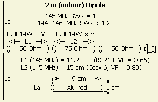 The electrical length L of the coaxes is 29.336: 360 = 0.0815 λ (wavelength, lambda or Wave)