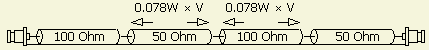 A coaxial cable of 100 ohms is obtained by connecting like («fig) the right figure e.g. two 50 Ohm cables in series. Do not forget to solder the screens together on both sides. Additional advantage is one has to deal with only one cable type.