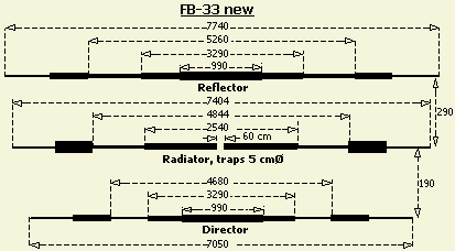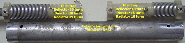 Er rouleren of worden te koop aangeboden al dan niet originele elementen van Fritzel antennes. Herstellen zonder de juiste afmetingen is een probleem. Vaak wordt mij dan ook naar de afmetingen van de elementen gevraagd. Omdat zij hier geruime tijd niet gebruikt werden, was het mogelijk om het een en ander te meten. Hier vormde een FB-13 dipool en director uit 1970/71 beide met 4 cm Ø traps, een 2 elementen Yagi waarmee tientallen jaren met succes gewerkt werd. Later werd de dipool vervangen door een modernere FB-13 met 5 cmØ traps.
