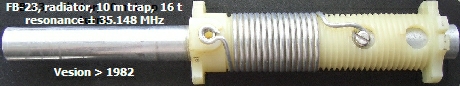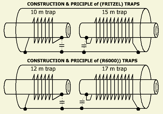 In principe zijn de traps sperkringen waarbij een condenstor parallel staat aan een spoel. Bij Fritzel types zult u geen condensator («fig) vinden omdat de spoel een "condensator" vormt met de kunststof spoelvorm, de antennestaven en het aluminium omhulsel of koker. Het binnenwerk kan uitgeschoven worden door twee schroeven los te draaien. Verder in dit artikel staan de met een dipper gemeten resonanties van deze binnenwerken. Dat kan handig zijn bij het opsporen van een defect als bij u om de een of andere reden de resonantie of SWR op een bepaalde band niet goed meer is.