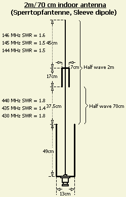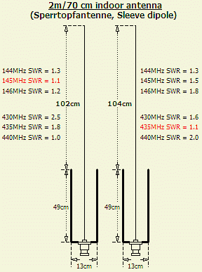 De hier getoonde antenne is niets nieuws; het is een twee banden systeem. De antenne is in ons land bekend als fietspomp antenne en verder als Sleeve Dipole en Sperrtopfantenne. Het kan snel gemaakt worden van drie op elkaar gesoldeerde blikken van 16 cm hoog en een diameter van 13 cm dienend als ¼ golf aanpasstuk (sleeve) voor een ½ golf straler. De totale hoogte van de "sleeve" wordt dan 49 cm.