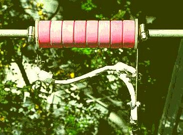 After these tests I climbed a pine tree and mounted the aluminium rod horizontally ca 10 m above earth, taped to two branches on each side of the toroids.