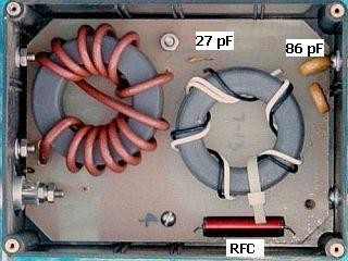 I replaced («fig) the two 86 pF caps in series with a single transmitting high current 47 pF doorknob type.