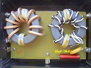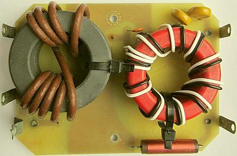 The capacitors paralleling the sealed coils are coaxial types with a rod, a tube and a dielectric tubing in between. One end is sealed with heath shrink tubing and the other end is protected with a cap.