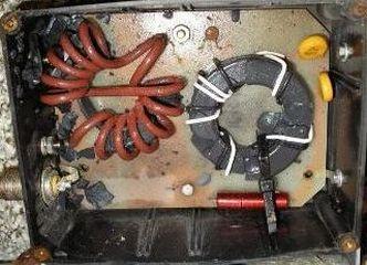 With a suitable antenna tuner one could also use a R5 on more than five bands and even on 80 m! If that happens with a lot of power, then the right picture shows what the result is. Both toroids cannot handle the mismatch, getting hot in a very short time and then burst!