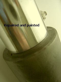 The insulator was "painted" with layers of 2 component polyester resin and sprayed (fig») with "bumper spray", a black non-metallic spray paint. It prevents the deterioration of the polyester.